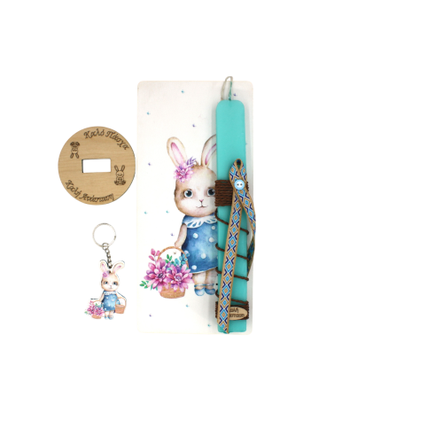 Χειροποίητη Λαμπάδα πασχαλινή πλακε με αρωματικό κερί 'Κουνελάκι' 28cm