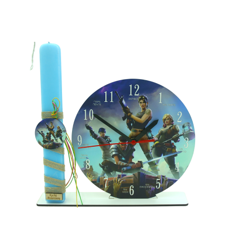 Χειροποίητη Λαμπάδα Ρολόι με αρωματικό κερί πλακέ ''FORTNITE '' 28cm