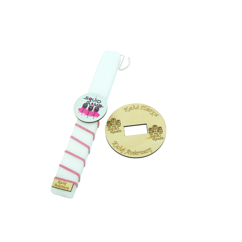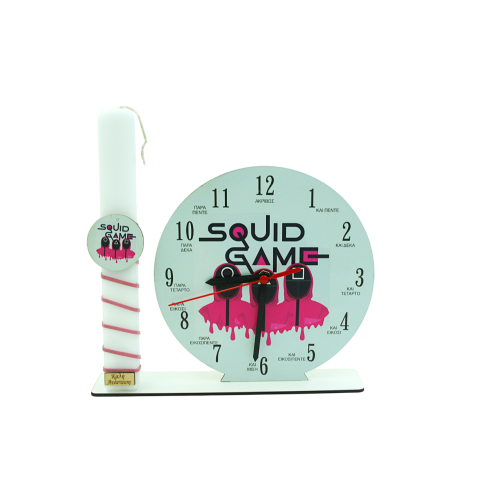 Χειροποίητη Λαμπάδα ρολόι με αρωματικό κερί πλακέ και φιγούρα ''SQUID GAME'' 28cm