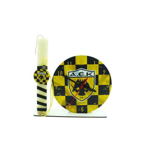 Χειροποίητη Λαμπάδα ρολόι με αρωματικό κερί πλακέ και φιγούρα ''ΑΕΚ'' 28cm