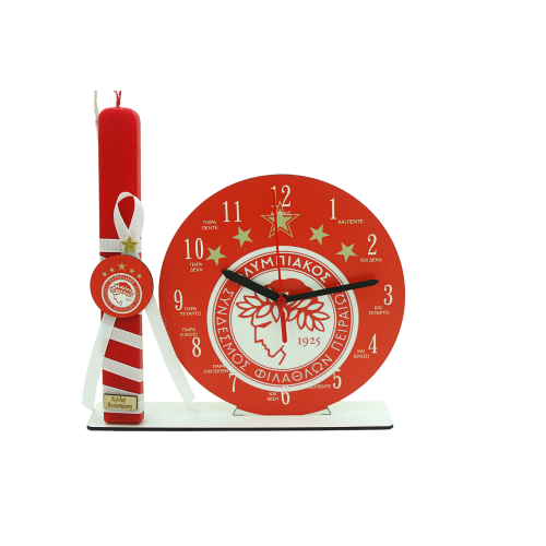 Χειροποίητη Λαμπάδα ρολόι με αρωματικό κερί πλακέ και φιγούρα ''ΟΛΥΜΠΙΑΚΟΣ'' 28cm
