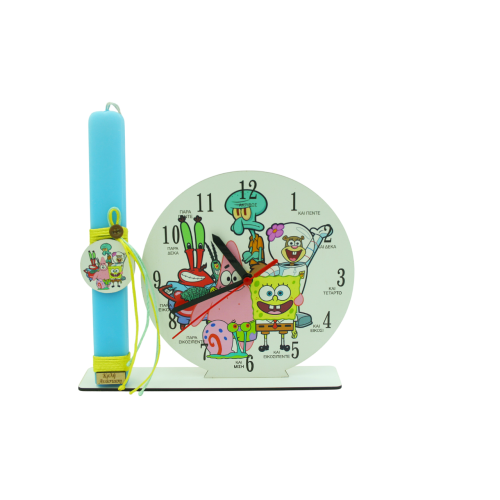 Χειροποίητη Λαμπάδα ρολόι με αρωματικό κερί πλακέ και φιγούρα ''ΜΠΟΜΠ ΣΦΟΥΓΓΡΑΡΑΚΗΣ'' 28cm